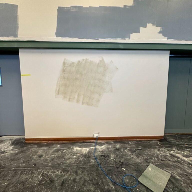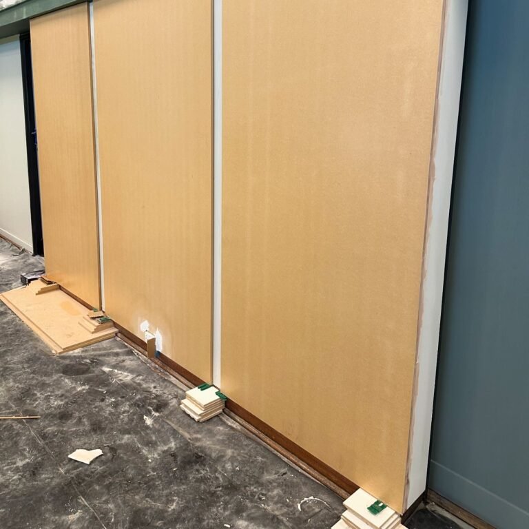 Working alongside Lou Day Interiors, we transformed the dining hall at St Catherine’s College with a sustainable and modern approach. Our team applied architectural vinyl finishes to refresh the dining tables, doors, and feature walls, providing a cost-effective solution while maintaining the hall’s original elements. This project was completed with minimal downtime, ensuring the dining hall was quickly back in use.