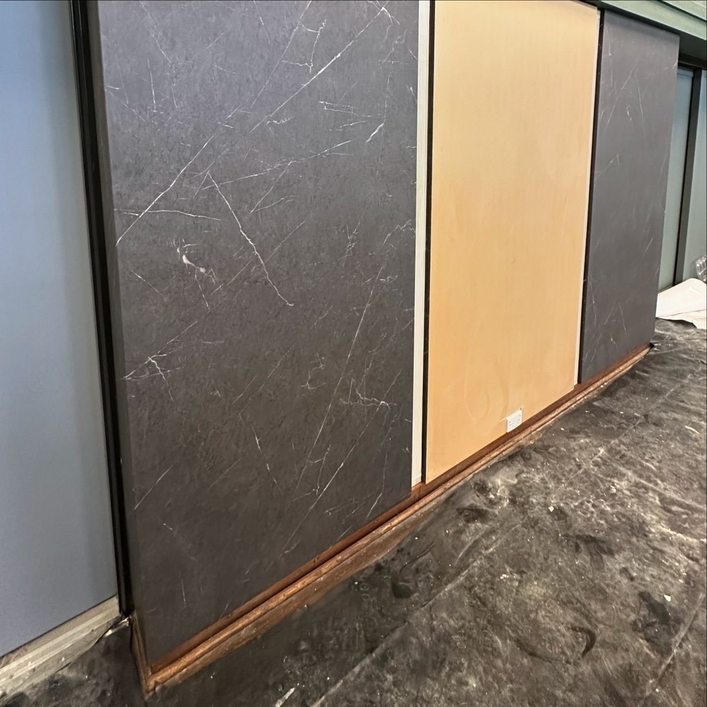 Doors throughout the space, including double doors, fire doors, and sliding doors, were wrapped using PNT07 Painted Wood vinyl, providing a consistent aesthetic throughout.